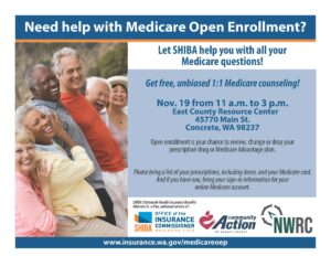 Statewide Health Insurance Benefits Advisors (SHIBA) will be available to answer any questions you may have with your Medicare questions. Please bring a list of your prescriptions, including doses, and your Medicare card. And if you have one, bring your sign-in information for your online Medicare account.